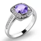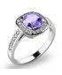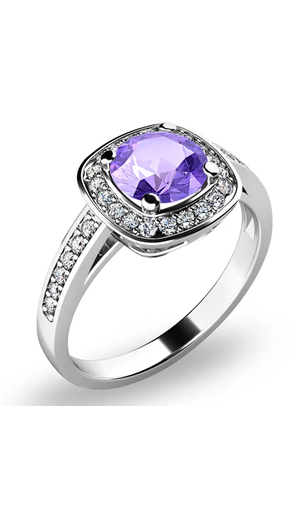 Dámský prsten vyrobený z bílého čtrnácti karátového zlata - 585/1000 v lesklé povrchové úpravě. Luxusní prsten je tvořen hlavním velkým ametystem ve světle fialové barvě, kolem kterého je dokola osazeno 20 ks menších diamantů a dalších 12 ks je vsazeno do obroučky. Celkem je v prstenu 32 ks diamantů vybroušených briliantovým brusem, díky kterému dokonale odráží světlo a jejich brilance neuvěřitelné září z každého úhlu pohledu! Celý prsten působí dokonalým a luxusním dojmem!