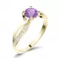 Dámský prsten vyrobený ze žlutého čtrnácti karátového zlata - 585/1000 v lesklé povrchové úpravě. Prsten je tvořen hlavním kulatým Ametystem ve fialové barvě, ke kterému se vzpínají propletená ramena obroučky v kterých je vsazeno 14 ks menších diamantů vybroušených briliantovým brusem, který dodává vzniklým facetám maximální brilanci! Celý prsten působí dokonalým a luxusním dojmem!