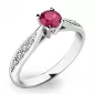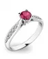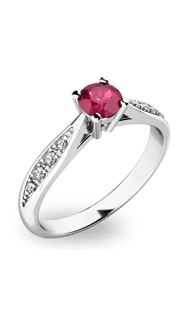 Krásny dámsky prsteň vyrobený z bieleho štrnástich karátových zlatých s čistotou 585/1000 pritiahne vaše okolie vďaka vloženému červenému rubínu. Okrem toho je prsteň zdobený 8 menšími diamantmi. Prsteň je veľmi elegantný a každá žena, ktorú mu darujete.