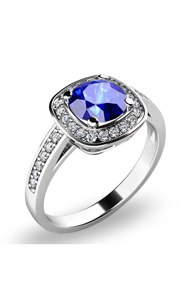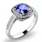 Dámský prsten vyrobený z bílého čtrnácti karátového zlata - 585/1000 v lesklé povrchové úpravě. Luxusní prsten je tvořen hlavním velkým tanzanitem v modré barvě, kolem kterého je dokola osazeno 20 ks menších diamantů a dalších 12 ks je vsazeno do obroučky. Celkem je v prstenu 32 ks diamantů vybroušených briliantovým brusem, díky kterému dokonale odráží světlo a jejich brilance neuvěřitelné září z každého úhlu pohledu! Celý prsten působí dokonalým a luxusním dojmem!
