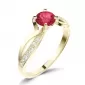 Dámský prsten vyrobený ze žlutého čtrnácti karátového zlata - 585/1000 v lesklé povrchové úpravě. Prsten je tvořen hlavním kulatým Turmalínem v červené barvě, ke kterému se vzpínají propletená ramena obroučky v kterých je vsazeno 14 ks menších diamantů vybroušených briliantovým brusem, který dodává vzniklým facetám maximální brilanci! Celý prsten působí dokonalým a luxusním dojmem! Je dokonale zpracovaný do nejmenších detailů a bude tak ideálním dárkem, který zaručeně potěší každou ženu či dívku.