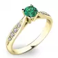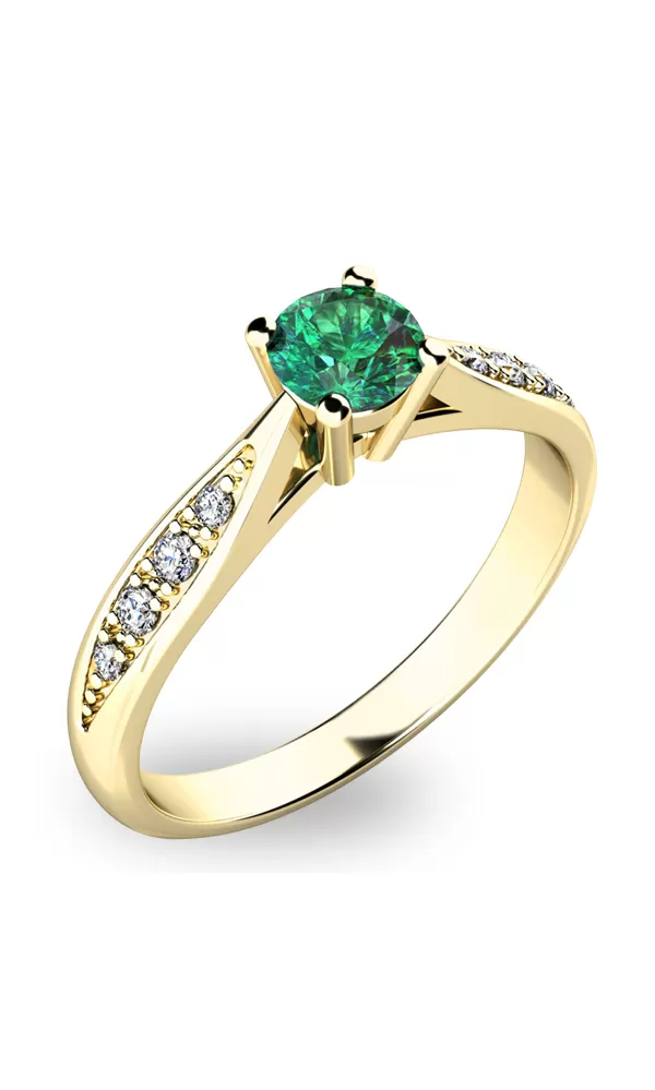Krásny dámsky prsteň vyrobený zo žltých štrnástich karátových zlatých s čistotou 585/1000 pritiahne vaše okolie vďaka zeleným smaragdom. Okrem toho je prsteň zdobený 8 menšími diamantmi. Prsteň je veľmi elegantný a každá žena, ktorú mu darujete.