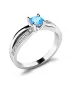 Elegantní prsten je vyroben z bílého čtrnáctikarátového zlata - 585/1000 v lesklé povrchové úpravě. Prstenu dominuje středový kulatý modrý topaz -… Celý popis