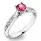 Tento krásny prsteň je vyrobený z bieleho štrnástich karátového zlata s rýdzosťou 585/1000 s lesklou povrchovou úpravou. Prsteň je vysadený turmalínom v ružovo-vínovej farbe a 8 menšími diamantmi. Prsteň je veľmi elegantný a obľúbi si ho každá žena, ktorej ho darujete.