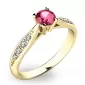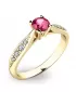 Tento krásny prsteň je vyrobený zo žltého štrnástich karátového zlata s rýdzosťou 585/1000 s lesklou povrchovou úpravou. Prsteň je vysadený turmalínom v ružovo-vínovej farbe a 8 menšími diamantmi. Prsteň je veľmi elegantný a obľúbi si ho každá žena, ktorej ho darujete.
