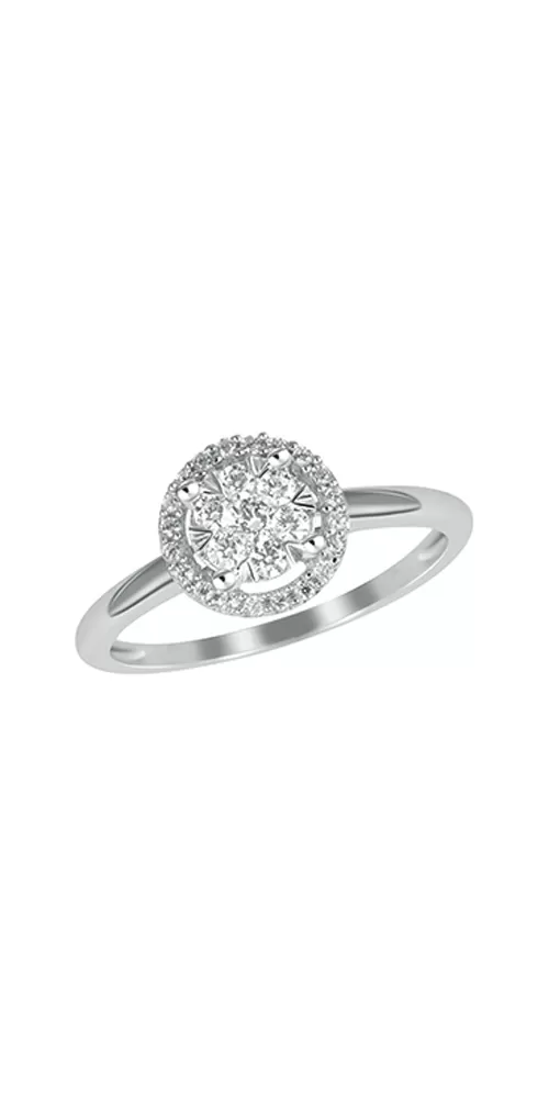 Tento luxusný dámsky prsteň je vyrobený z bieleho štrnásťkarátového zlata - 585/1000 v lesklej povrchovej úprave. Prsteň je vysadený dvadsaťsedem diamantmi briliantového brusu, ktorý zaisťuje maximálnu brilanciu vybrúsených facet, dokonale odráža svetlo a neuveriteľné žiari z každého uhla pohľadu! Prsteň vyniká krásnou brilanciou kameňov vďaka skladbe a štýlovo čistému vsadeniu zirkónov