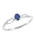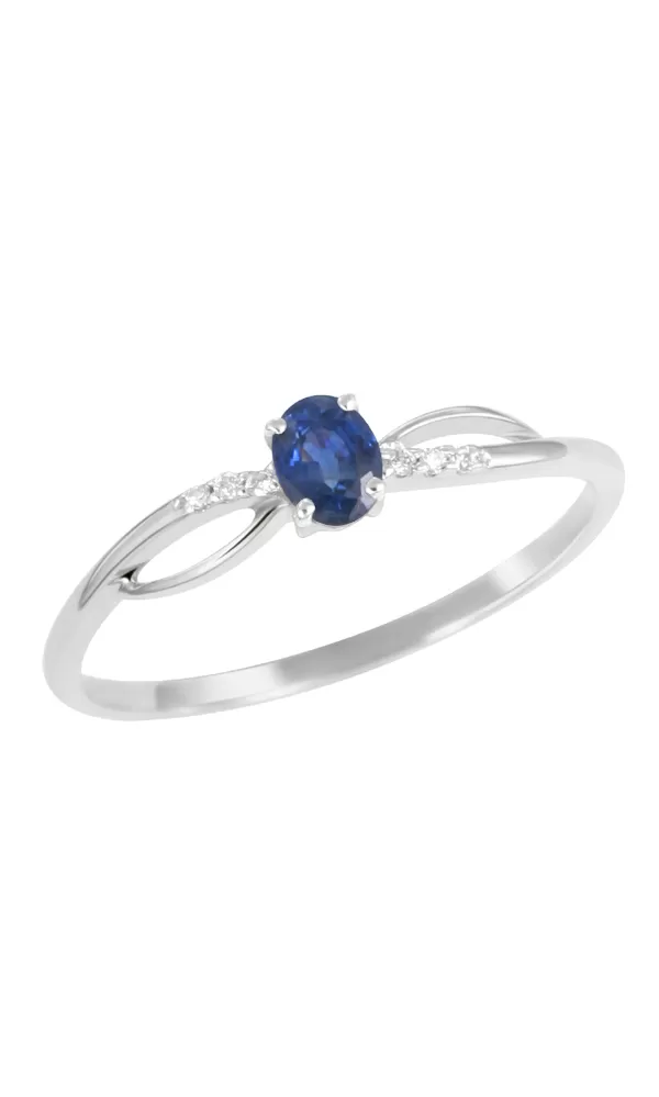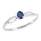 Jednoduchý elegantný prsteň vyrobený z bieleho štrnásťkarátového zlata - 585/1000 v lesklej povrchovej úprave. Prsteň je zdobený šiestimi žiarivými diamantmi briliantového brusu, ktorý zaisťuje maximálnu brilanciu vybrúsených facet, dokonale odráža svetlo a neuveriteľne žiari z každého uhla pohľadu a dominantou prsteňa je oválny modrý zafír. Prsteň pôsobí veľmi jemne a elegantne.