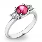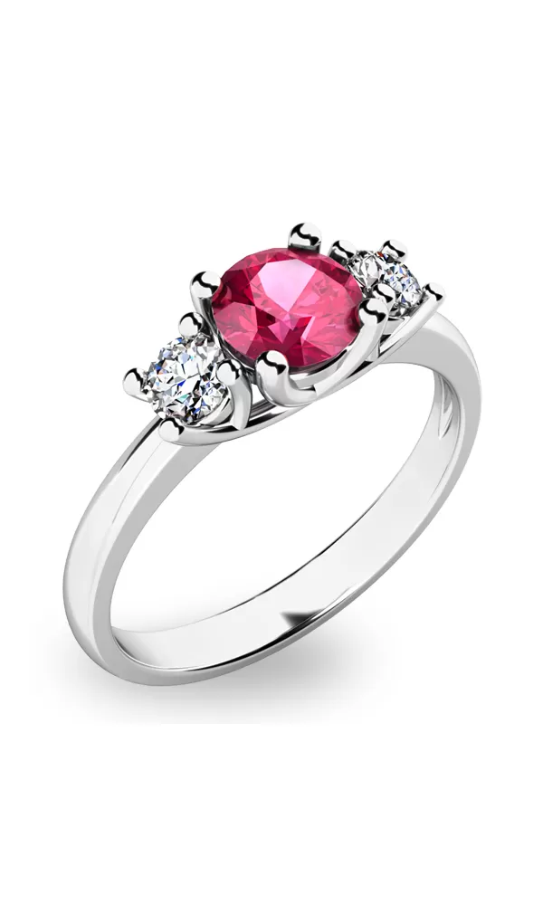 Tento dámsky prsteň je vyrobený z bieleho štrnástich karátového zlata s rýdzosťou 585/1000 v lesklej povrchovej úprave. Dominantou celého prsteňa je prírodný turmalín v krásnej ružovkastej farbe, ktorý pozdvihne váš vzhľad a zaujme všetkých vo vašom okolí. Vedľa turmalínu sú vsadené dva menšie diamanty. Všetky kamene držia silné uchytenie, ktoré je nádherné a prepracované aj pri bočnom pohľade. Elegantná jednoduchá obrúčka podčiarkuje krásu a ladnosť prsteňa.