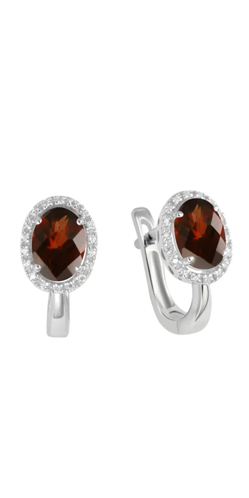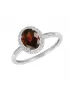 Úchvatný dámsky prsteň je vyrobený z bieleho štrnásťkarátového zlata - 585/1000 v lesklej povrchovej úprave. Prsteň je zdobený dvadsaťjeden žiarivými diamantmi briliantového brusu, ktorý zaisťuje maximálnu brilanciu vybrúsených facet, dokonale odráža svetlo a neuveriteľne žiari z každého uhla pohľadu a jedným prírodným granátom oválneho tvaru.