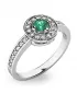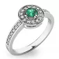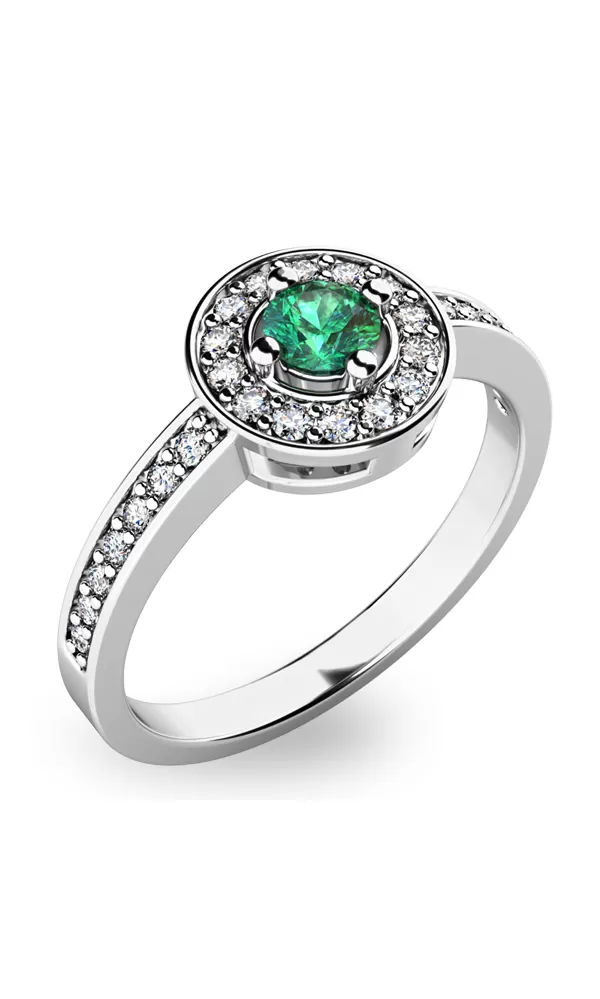 Dámsky prsteň vyrobený z bielych štrnástich karátových zlatých - 585/1000 v lesklom povrchu. Luxus Prsteň je tvorený hlavným veľkým smaragdom v krásnej zelenej farbe v strede, okolo ktorých sú menšie diamanty. Prsteň krúžku je tiež napoly vyrovnaný malými diamantmi. Celý prsteň poskytuje dokonalý dojem!