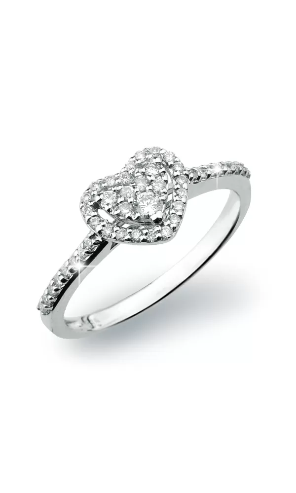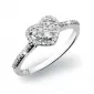 Romantický dámsky prsteň vyrobený z bieleho štrnásťkarátového zlata - 585/1000 v lesklej povrchovej úprave. Prsteň je vysadený štyridsiatimi tromi žiarivými diamantmi briliantového brusu, ktorý zaisťuje maximálnu brilanciu vybrúsených facet, dokonale odráža svetlo a neuveriteľne žiari z každého uhla pohľadu! Prsteň zdobia nielen nádherné diamanty ale aj srdce, ktoré zaručene dojme Vašu drahú polovičku.