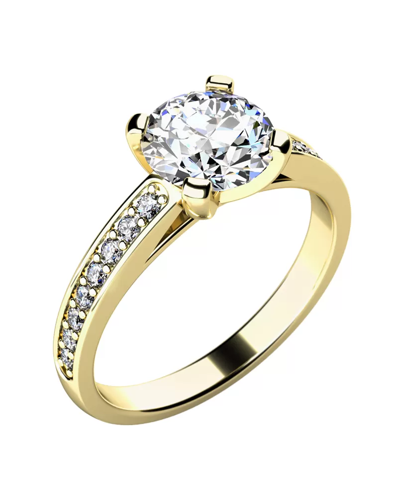 U tohto prsteňa môžete ovplyvniť jeho cenu kvalitou použitých diamantov. Radi Vám do prsteňa stavíme diamanty lepšej kvality alebo v prípade požiadavky na nižšiu cenu Vám môžeme do prsteňa staviť diamanty o jednu alebo dve triedy nižšej kvality, kde voľným okom rozdiel spozná len skúsený gemológ (triedy diamantov sa hodnotia pod desaťnásobným zväčšením). Radi Vám pred vsadením diamantov do prsteňa na ukážku a na schválenie pripravíme štandardnú kvalitu a podľa požiadavky diamanty vyššej alebo nižšej kvality.