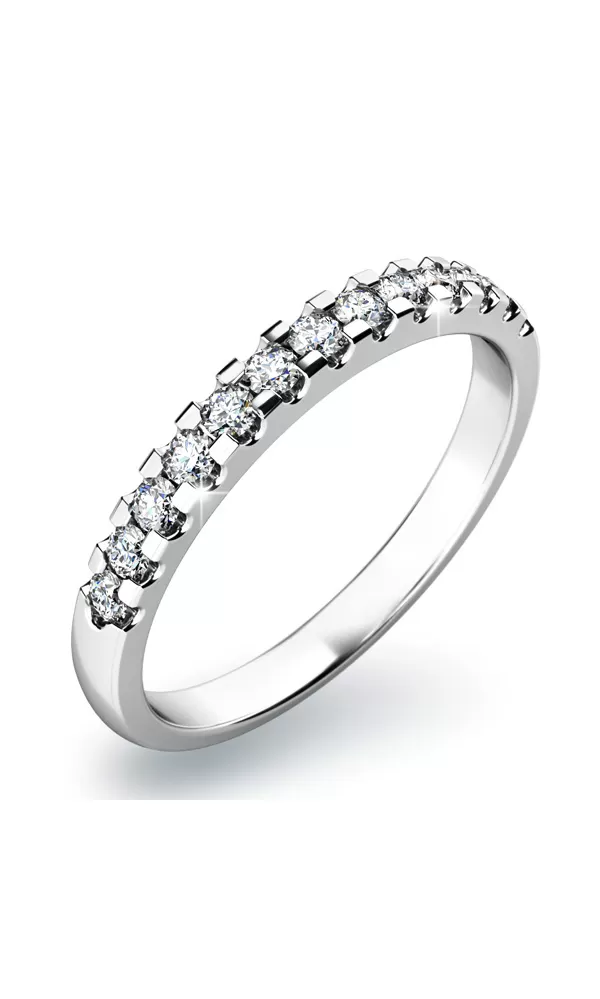 Prsteň vyrobený z bieleho štrnásťkarátového zlata - 585/1000 v lesklej povrchovej úprave. V prsteni je vsadených trinásť diamantov briliantového brusu, ktoré sú vsadené do jednej línie. Prsteň pôsobí veľmi jemne a luxusne. Každá žena sa do neho zamiluje. Prsteň je možné kombinovať s inými prsteňmi a nosiť ich súčasne na jednom prste. Prsteň vyrábame a je skladom aj v žltom zlate.