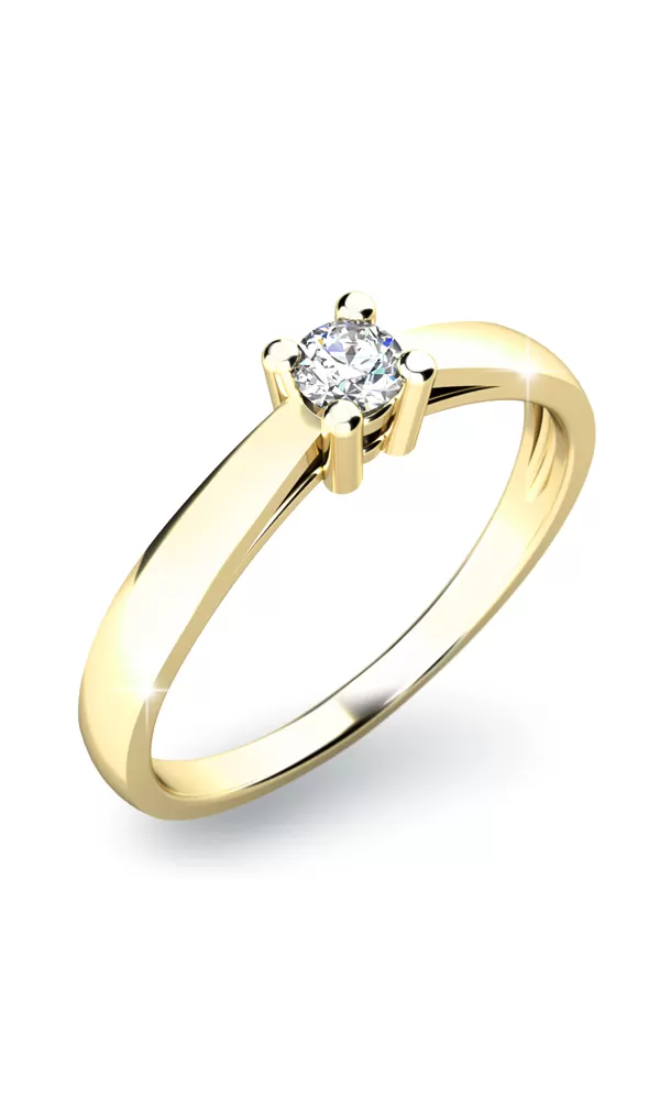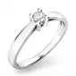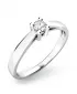 Jemný dámsky prsteň vyrobený z bieleho štrnásťkarátového zlata - 585/1000 v lesklej povrchovej úprave. Solitérny prsteň s jedným stredovým okrúhlym diamantom briliantového brusu. Obrúčka je pri diamante mierne zúžená, aby viac vynikol žiarivý diamant.
