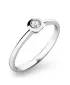 Dámsky prsteň vyrobený z bieleho štrnásťkarátového zlata - 585/1000 v lesklej povrchovej úprave. V prsteni je vsadený "na hladko do rámu" jeden okrúhly diamant briliantového brusu. Okrúhle usadenie do rámu s golierom opticky diamant a celkový dojem z neho zväčšuje. Vďaka svojej jednoduchosti sa bude prsteň krásne kombinovať s inými prsteňmi.
