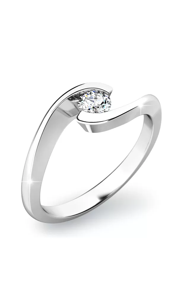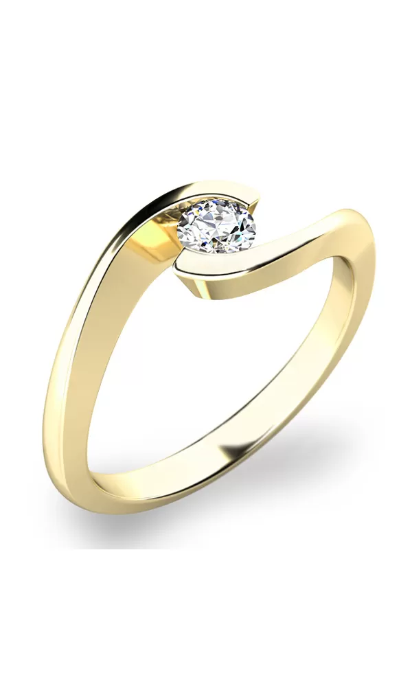 Prekvapte vašu partnerku krásnym prsteňom s briliantom! Jemný dámsky prsteň vyrobený zo štrnásťkarátového zlata - 585/1000 v lesklej povrchovej úprave. Prsteň má jeden diamant okrúhleho briliantového brusu, ktorý je uchytený do elegantne a moderne zakrútenej obrúčky.