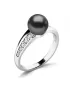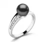 Prsteň s čiernou perlou a briliantmi 140012-B-FW-Black