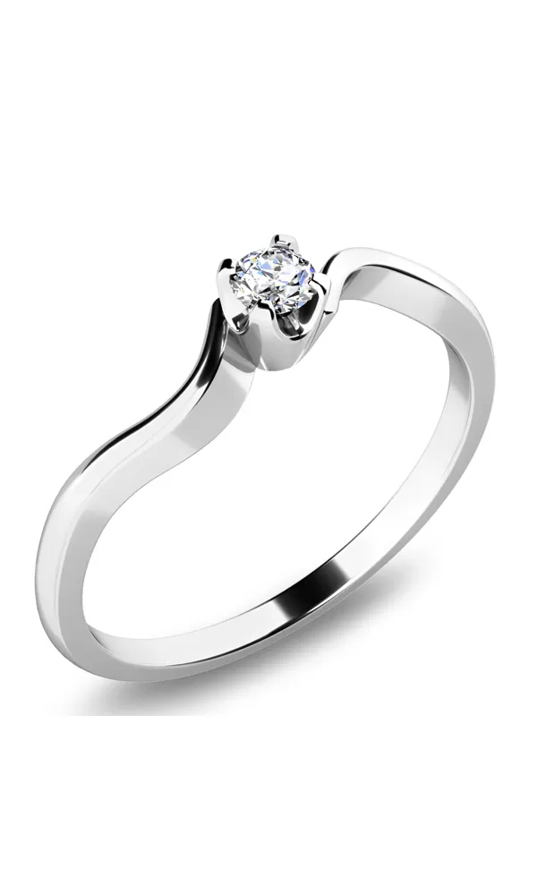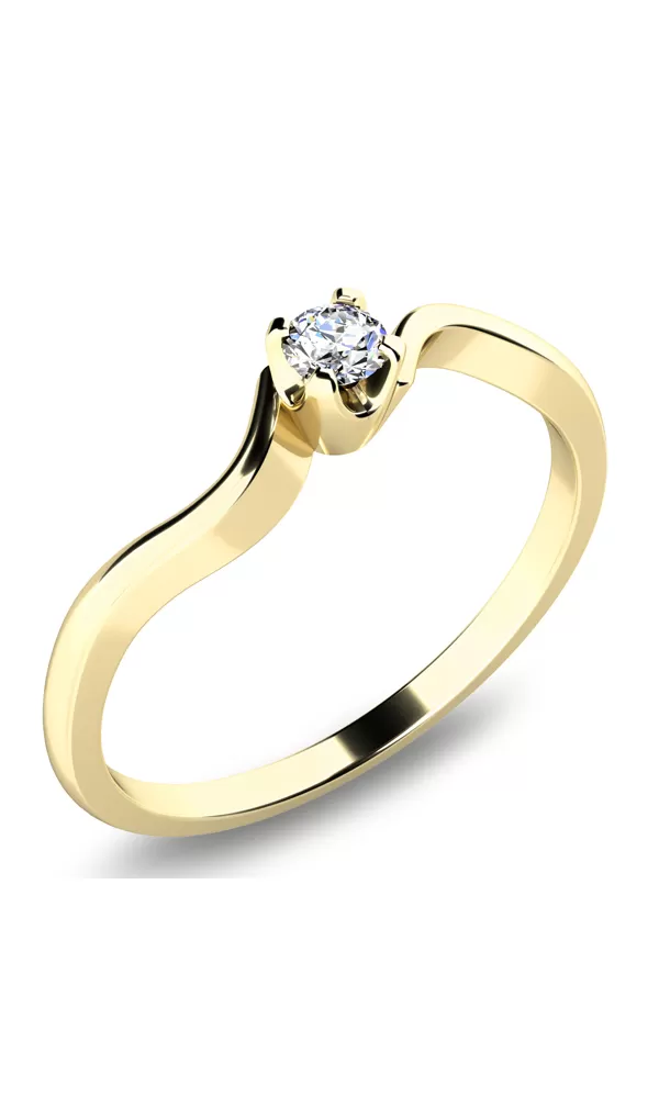 Decentný zásnubný prsteň je zdobený jedným okrúhlym diamantom s briliantovým brusom, ktorý zaisťuje maximálnu brilanciu. Diamant je pevne uchytený v korunke štyrmi krapnami. Prstienok pôsobí jemne a romanticky.  Zásnubný prsteň je vyrobený zo štrnásťkarátového zlata - 585/1000 v lesklej povrchovej úprave.