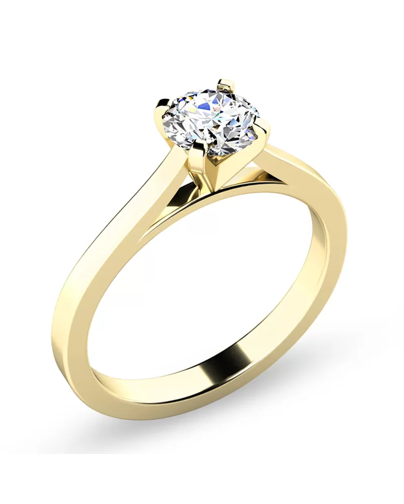 Luxusní dámský prsten typu Soliter je vyroben ze žlutého čtrnáctikarátového zlata - 585/1000 v lesklé povrchové úpravě. Prsten má jeden výrazný diamant kulatého brusu, který je uchycený do čtyřkrapnové korunky. Diamant je vybroušený briliantovým brusem Signity star, který zajišťuje maximální brilanci kamene. Vsazování diamantů do prstenů provádějí naši nejzkušenější mistři zlatníci ručně pod mikroskopem s přesností na 0,01mm a proto nehrozí vypadnutí kamínků jako to bývá u strojně vyráběných prstenů. Prsten je čistého designu v klasickém provedení, který patří stále k nejoblíbenějším typům prstenů.