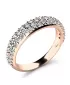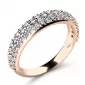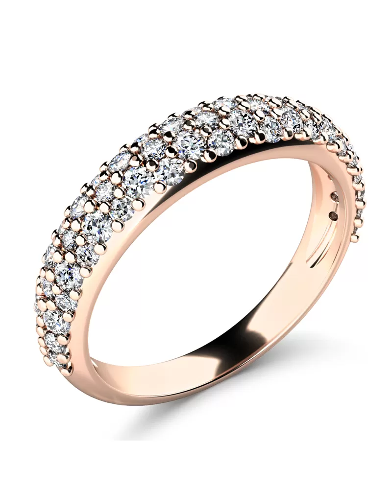 Nádherný dámský prsten je vyroben z růžového čtrnáctikarátového zlata - 585/1000 v lesklé povrchové úpravě. Obroučka prstenu je v horní části osázena kulatými diamanty, které jsou vybroušeny kulatým briliantovým brusem. Tento brus zajišťuje maximální brilanci vybroušených facet, dokonale odráží světlo a neuvěřitelně září z každého úhlu pohledu! Vsazování diamantů do prstenů provádějí naši nejzkušenější mistři zlatníci ručně pod mikroskopem s přesností na 0,01mm a proto nehrozí vypadnutí kamínků jako to bývá u strojně vyráběných prstenů. Prsten je čistého designu v klasickém provedení, který patří stále k nejoblíbenějším typům prstenů. Díky skladbě a stylově čistému vsazení diamantů vyniká prsten krásnou brilancí kamenů a působí luxusním dojmem!