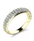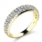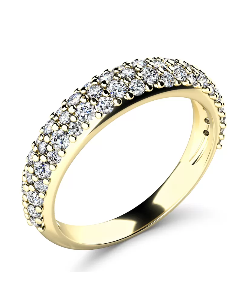 Nádherný dámský prsten je vyroben ze žlutého čtrnáctikarátového zlata - 585/1000 v lesklé povrchové úpravě. Obroučka prstenu je v horní části osázena kulatými diamanty, které jsou vybroušeny kulatým briliantovým brusem. Tento brus zajišťuje maximální brilanci vybroušených facet, dokonale odráží světlo a neuvěřitelně září z každého úhlu pohledu! Vsazování diamantů do prstenů provádějí naši nejzkušenější mistři zlatníci ručně pod mikroskopem s přesností na 0,01mm a proto nehrozí vypadnutí kamínků jako to bývá u strojně vyráběných prstenů. Prsten je čistého designu v klasickém provedení, který patří stále k nejoblíbenějším typům prstenů. Díky skladbě a stylově čistému vsazení diamantů vyniká prsten krásnou brilancí kamenů a působí luxusním dojmem!