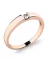 Elegantný a praktický dámsky prsteň je vyrobený z ružového štrnásťkarátového zlata - 585/1000 v lesklej povrchovej úprave. V prsteni je vsadený jeden okrúhly diamant, ktorý spája obrúčku prsteňa. Diamant je vybrúsený briliantovým brusom Signity star, ktorý zaisťuje maximálnu brilanciu kameňa. Vsadzovanie diamantov do prsteňov vykonávajú naši najskúsenejší majstri zlatníci ručne pod mikroskopom s presnosťou na 0,01mm a preto nehrozí vypadnutie kamienkov ako to býva u strojne vyrábaných prsteňov.