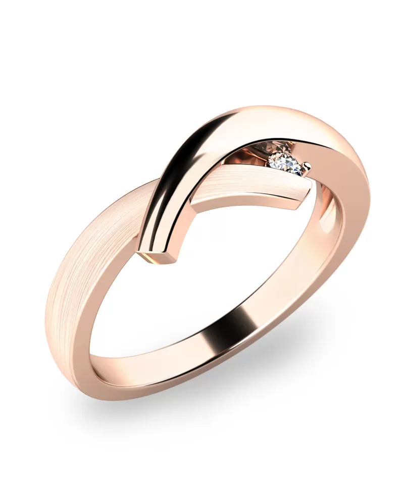 Jednoduchý prsten s jedním diamantem potěší každou ženu, které ho darujete. Prsten zaujme svou jednoduchostí díky ozdobě, která ladně pokračuje v obroučku celého prstenu. Prsten je vyroben ze čtrnácti karátového zlata - 585/1000 v lesklé povrchové úpravě. Diamant je vbroušený kulatým briliantovým brusem, který zajišťuje maximální brilanci vybroušených facet, dokonale odráží světlo a neuvěřitelné září z každého úhlu pohledu! Vsazování diamantů provádějí naši nejzkušenější mistři zlatníci ručně pod mikroskopem s přesností na 0,01mm a proto nehrozí vypadnutí kamínků jako to bývá u strojně vyráběných prstenů.