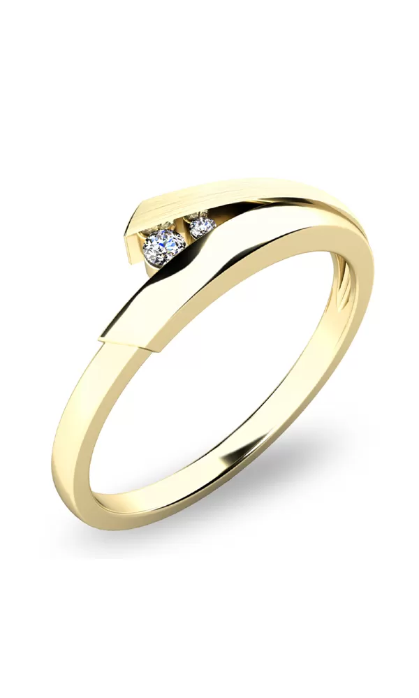 Elegantný prsteň s dvoma bielymi diamantmi vybrúsenými do okrúhleho briliantového brusu poteší každú ženu, ktorej ho darujete. Prsteň zaujme svojou jednoduchosťou a ladnými krivkami vychádzajúcich z obrúčky celého prsteňa. Prsteň je vyrobený zo štrnástich karátového zlata - 585/1000 v lesklej povrchovej úprave. Vďaka precíznemu briliantovému brúsu diamanty získali dokonalú brilanciu. Skvele odráža svetlo a september!