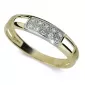 Dámsky prsteň je vyrobený z kombinácie bieleho a žltého štrnásťkarátového zlata rýdzosti 585/1000 v kombinácii lesklej a matnej povrchovej úpravy s desiatimi okrúhlymi diamantmi briliantového brusu.