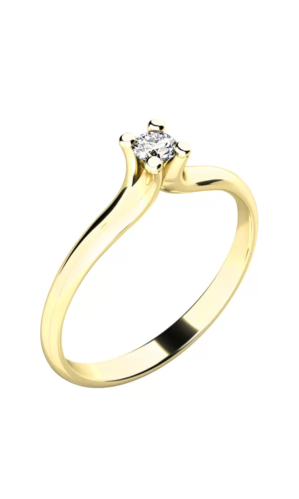 Dámsky jemný prsteň je vyrobený zo žltého štrnásťkarátového zlata - 585/1000 v lesklej povrchovej úprave. Prsteň má jeden okrúhly diamant briliantového brusu vsadený do štvorkrapňovej korunky. Vsadzovanie diamantov vykonávajú naši najskúsenejší majstri zlatníci ručne pod mikroskopom s presnosťou na 0,01 mm a preto nehrozí vypadnutie kamienkov ako to býva u strojne vyrábaných prsteňov.