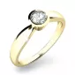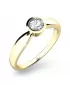 Dámsky prsteň vyrobený zo žltého štrnásťkarátového zlata - 585/1000 v lesklej povrchovej úprave. Klasický prsteň s jedným "na hladko" do okrúhlej obruby vsadeným diamantom briliantového brusu. Vďaka svojej jednoduchosti sa bude prsteň krásne kombinovať s inými prsteňmi.