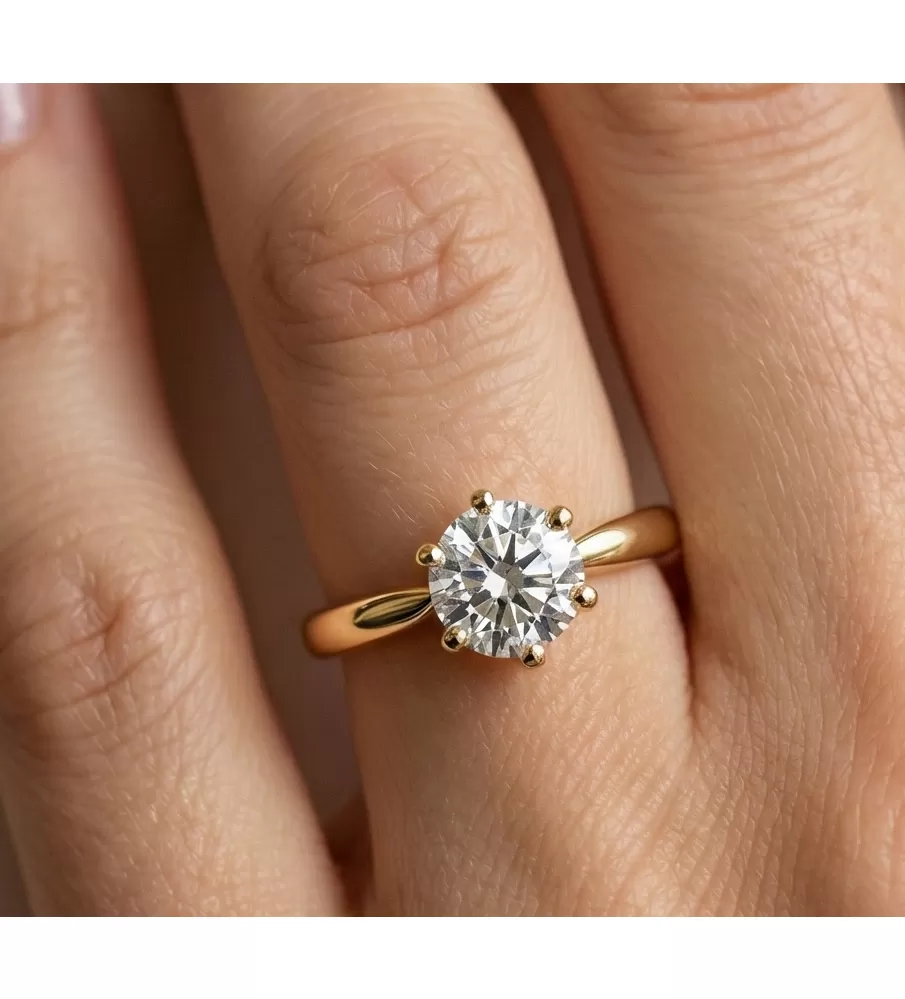 Prekvapte vašu partnerku krásnym prsteňom s briliantom! Decentný dámsky prsteň je vyrobený zo štrnásťkarátového zlata - 585/1000 v lesklej povrchovej úprave. Prsteň má jeden diamant briliantového brusu, ktorý je uchytený do šesťkrapnovej korunky. Prsteň je čistého dizajnu v klasickom prevedení, ktorý patrí stále k najobľúbenejším typom zasnubných prsteňov.