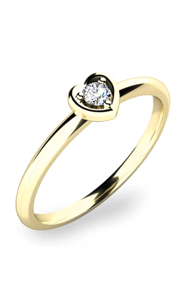 Hľadáte vhodný prsteň, ktorým dokonale vyjadríte svoju lásku? Je vaša priateľka romantická duša? Pokiaľ áno, tak ju určite dojmete týmto diamantovým prsteňom. Prsteň má jeden diamant uchytený tromi krapnami a je vsadený do tvaru srdca. Diamantový prsteň je vyrobený zo štrnásťkarátového zlata - 585/1000 v lesklej povrchovej úprave.