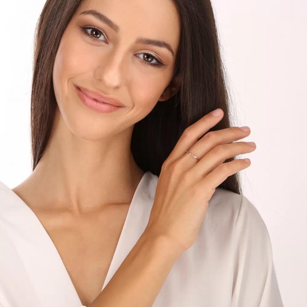 Pridáva prstienku na originalite a dodáva mu dynamiku, ktorá zaujme na prvý pohľad. Aj napriek svojej jednoduchosti je prsteň veľmi rafinovaný, s čistými líniami, ktoré podčiarkujú jeho minimalistickú krásu.