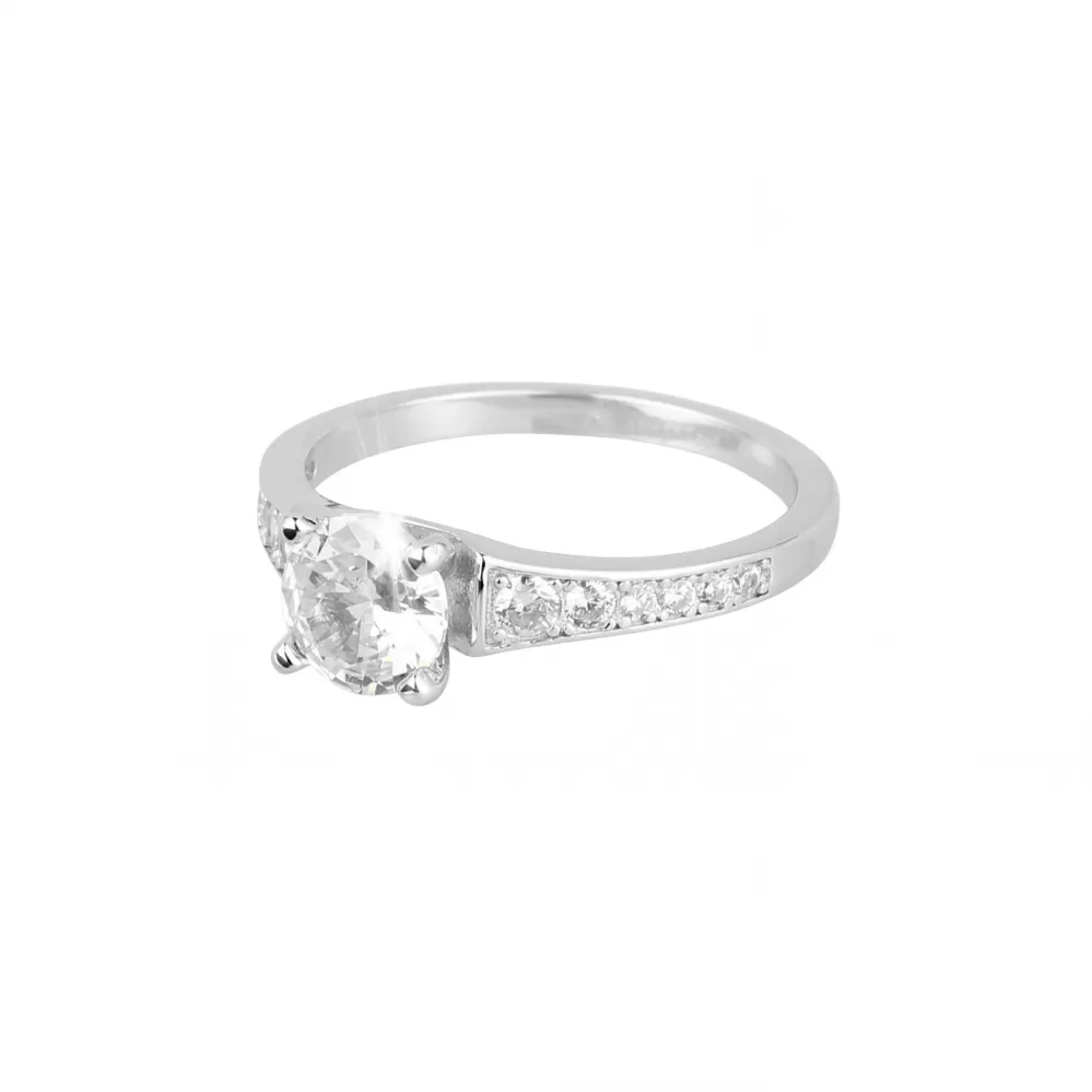 Dominantou tohto okúzľujúceho prsteňa je nádherný, veľký zirkón umiestnený uprostred. Tento brilantne vybrúsený kameň žiari ako hviezda na nočnej oblohe, svojimi mnohými fazetami zachytáva a rozptyľuje svetlo v dúhových odtieňoch. Okolo centrálneho zirkónu je umiestnený rad menších zirkónov, ktoré vytvárajú jemnú korunu, ktorá dodáva prsteňa ďalší rozmer a luxusný vzhľad.