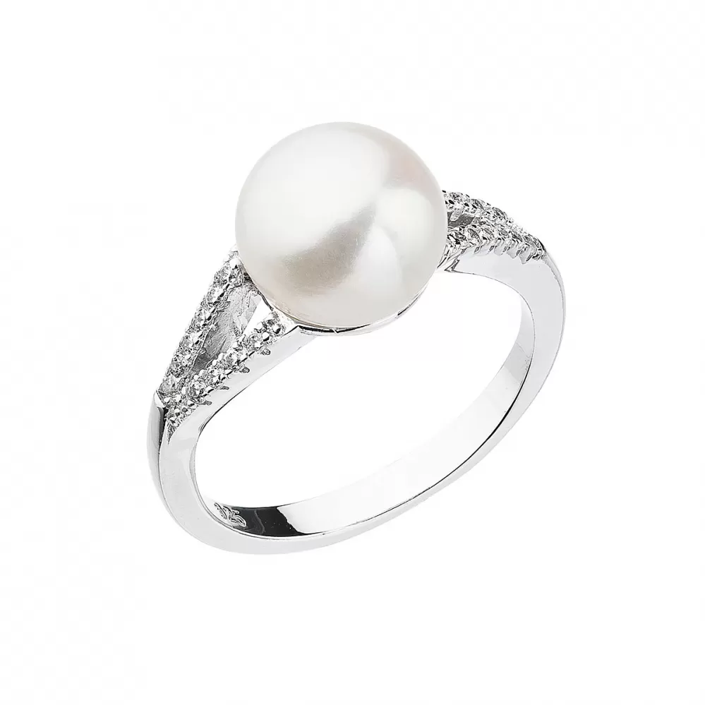 Strieborný prsteň s bielou riečnou perlou 25003.1