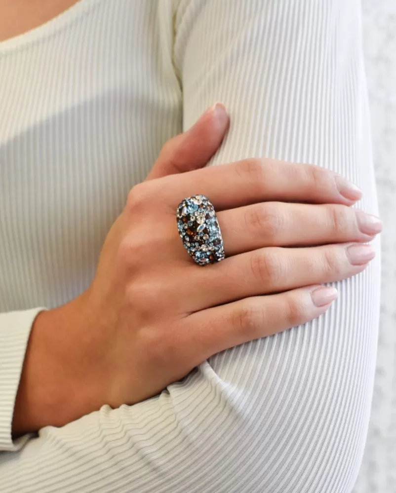Strieborný prsteň s kryštálmi modrý 35028.3