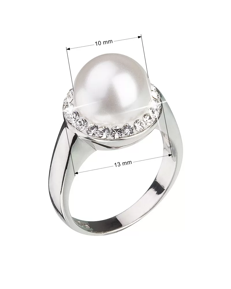 Parametre strieborného prsteňa s kryštálmi Preciosa a bielou perlou 35021.1