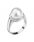 Strieborný prsteň s kryštálmi Swarovski a bielou perlou 35021.1