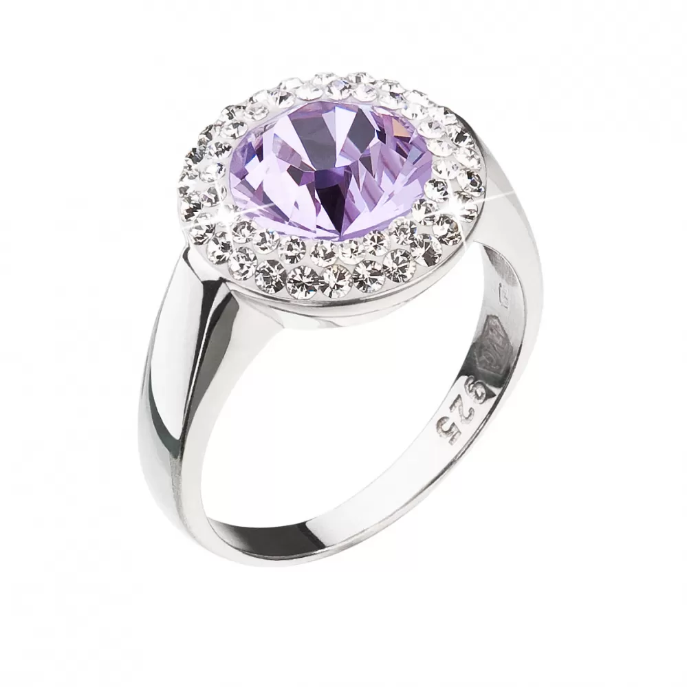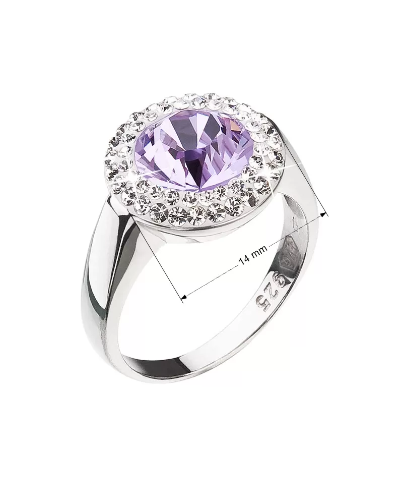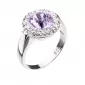 Prsteň 35026.3 je vyrobený z kvalitného striebra s rýdzosťou 925/1000, ktorého povrch je upravený ródiom. Rhodium šperk ochráni proti zožltnutiu, sčernaniu i poškriabaniu. Šperk je dekorovaný Swarovski kryštálmi - jedným veľkým okrúhlym vo fialovej farbe uprostred a drobnejšími bielymi kryštálmi po obvode prsteňa.