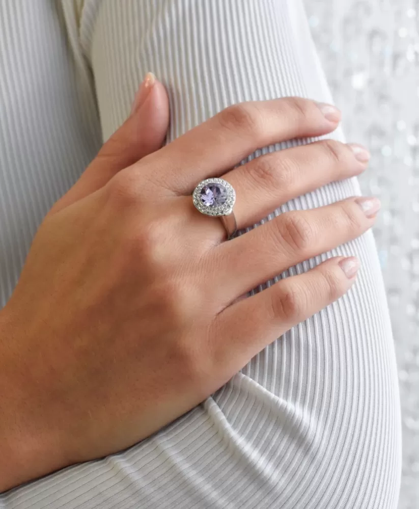 Parametre strieborného prsteňa s kryštálmi Swarovski fialový okrúhly 35026.3