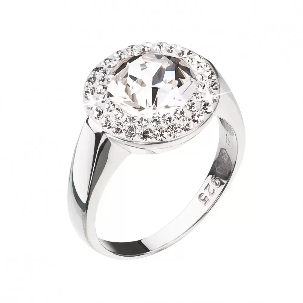 Strieborný prsteň s kryštálmi Swarovski okrúhly biely 35026.1