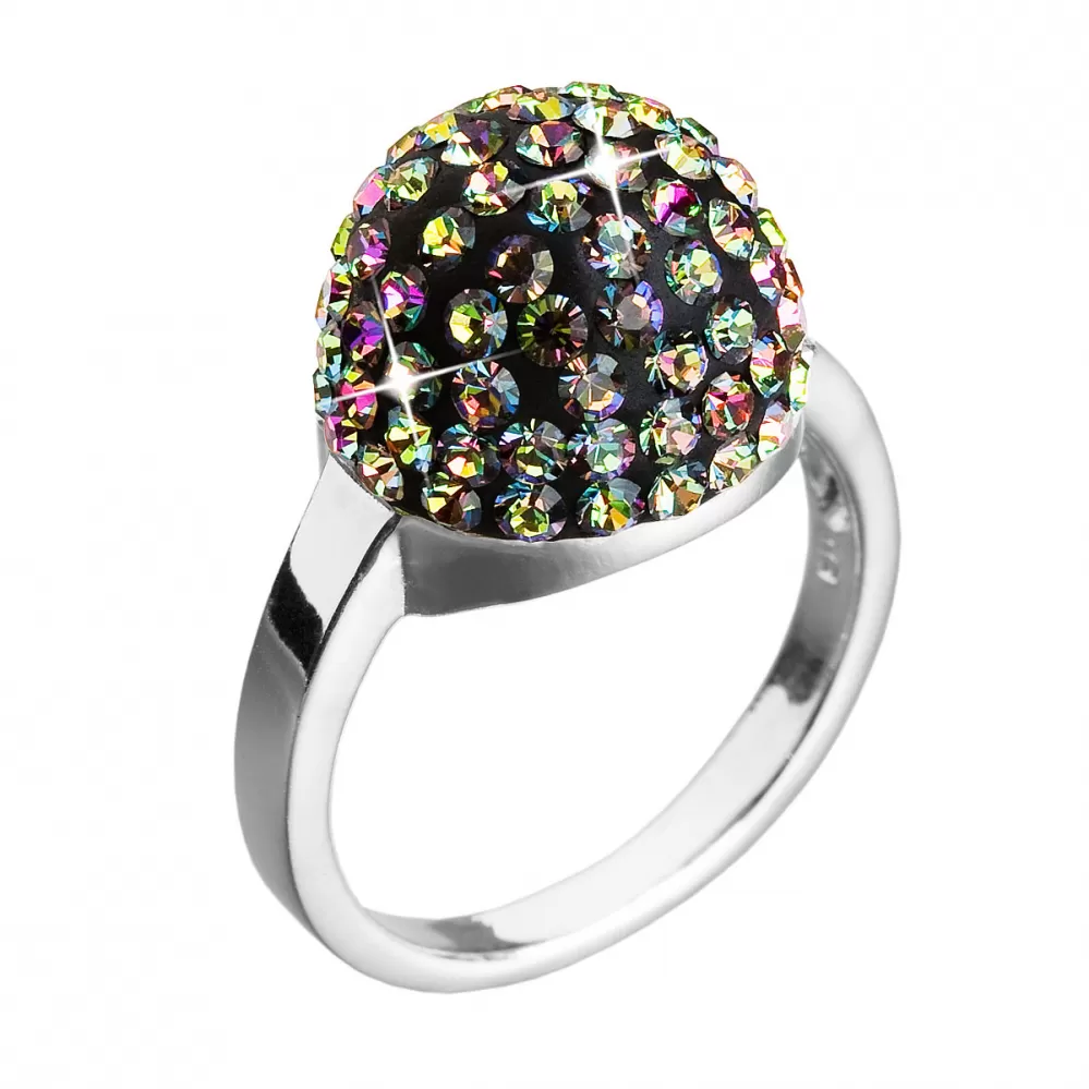 Strieborný prsteň s kryštálmi zelená hrče 735013.5 vitrail medium