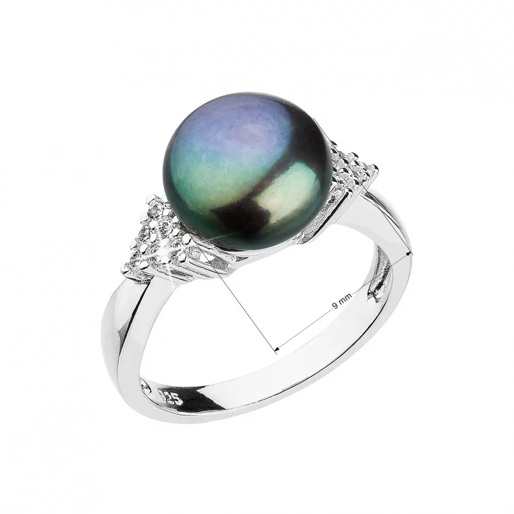 Prsteň 25002.3 je vyrobený zo striebra rýdzosti 925/1000 s povrchovou úpravou ródiom, ktoré chránia šperk pred nevhodnou zmenou vzhľadu (černanie, žltnutie alebo poškriabaniu). Je osadený jednou veľkou prírodnou perlou v peacock farbe a mnohými drobnými zirkónmi. Kvalita perly je označená AA.
