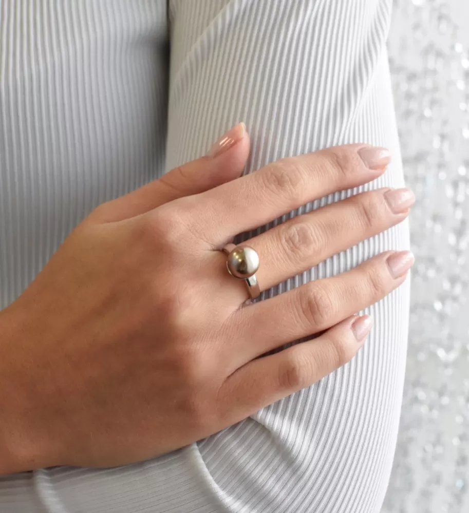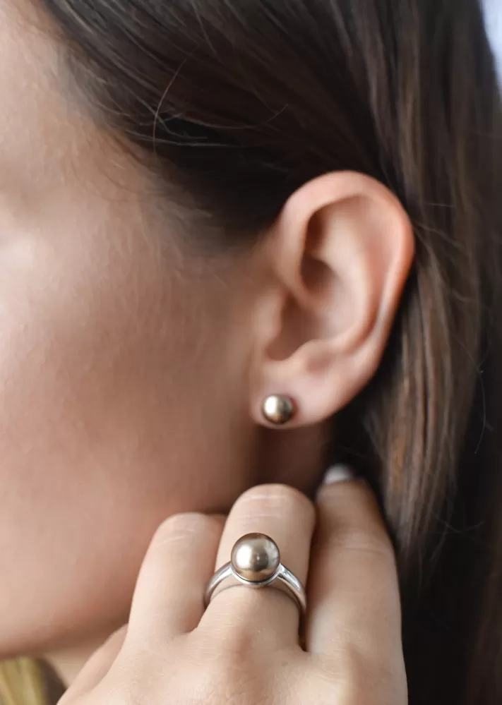 Prsteň je vyrobený zo striebra rýdzosti 925/1000 s povrchovou úpravou ródiom a je osadený jednou veľkou výraznou perlou v hnedej farbe. Veľkosť perly je 10 mm. Šperk neobsahuje nikel, a tak ho môžu bez obáv nosiť aj alergici.