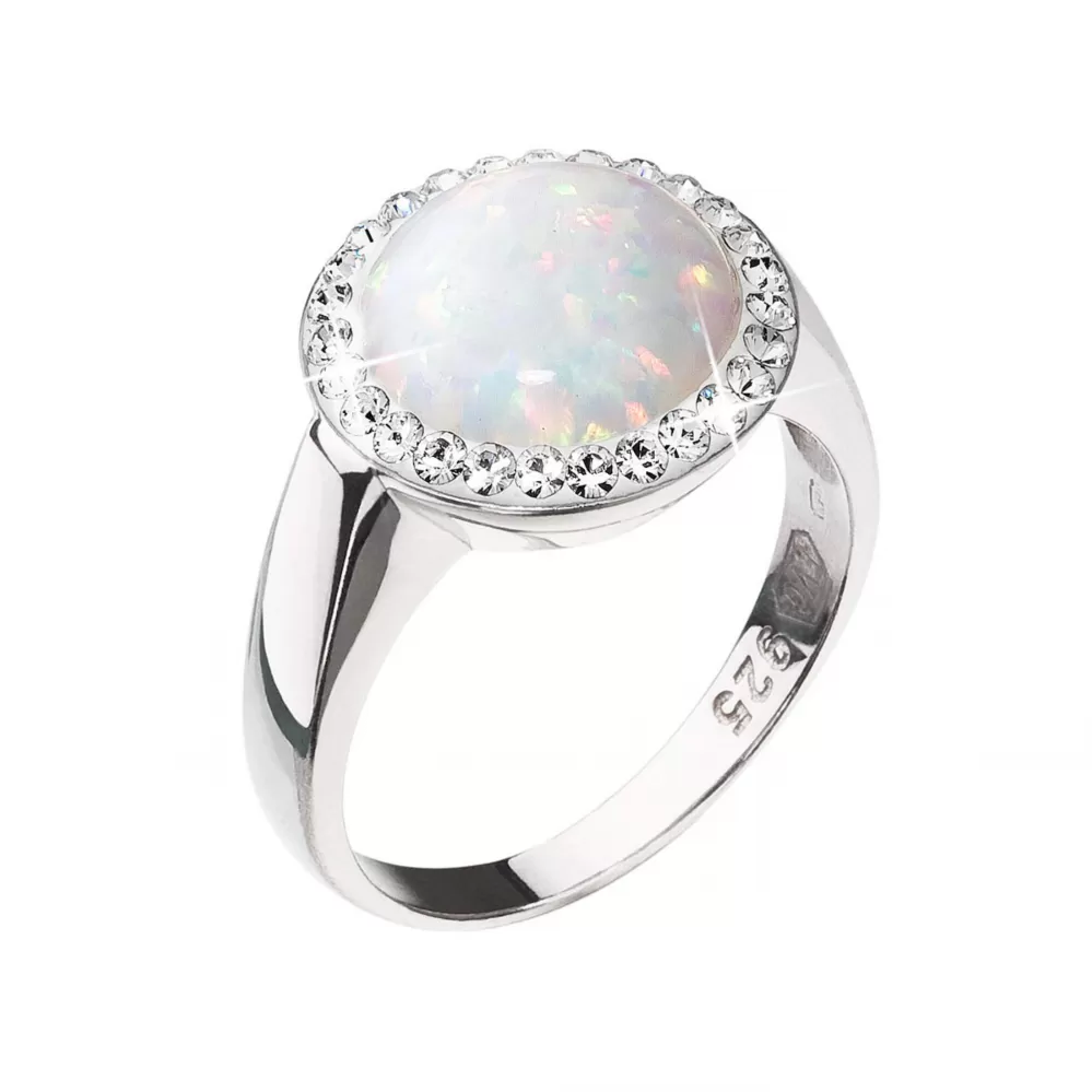 Strieborný prsteň so syntetickým opálom a kryštálmi Preciosa biely 35060.1