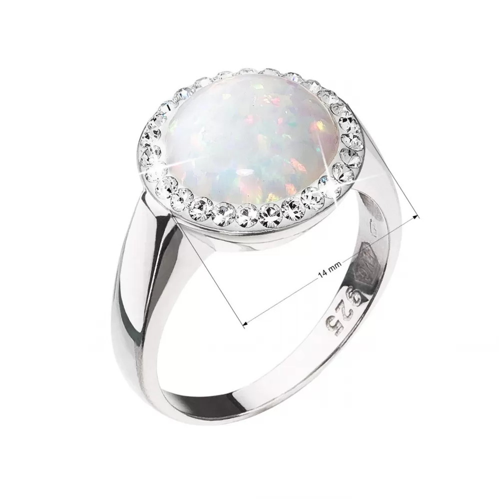 Parametre strieborného prsteňa so syntetickým opálom a kryštálmi Preciosa biely 35060.1