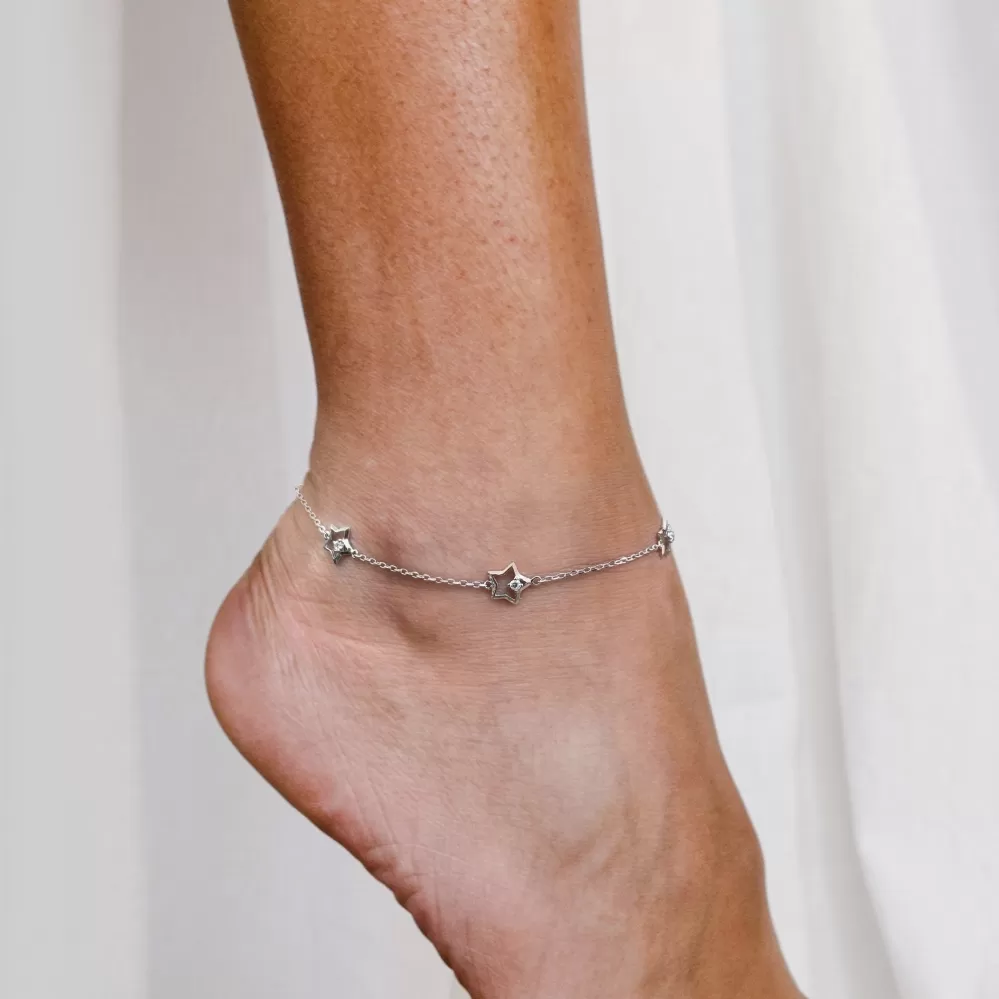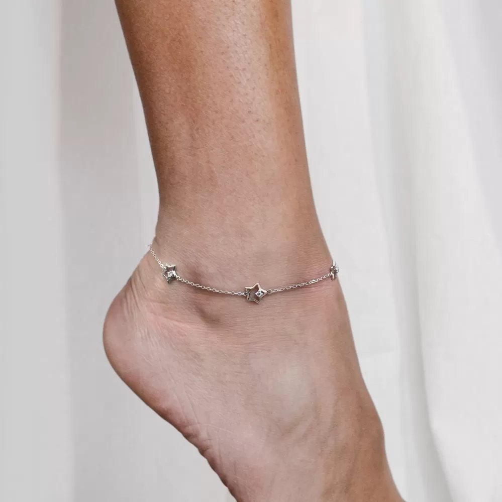 Štýlová strieborná retiazka na nohu pre dokonalý vzhľad vašich nôh 16003.1, po obvode zdobený vzorom v tvare hviezdičiek so zirkónmi pre letné mesiace, ale využijete ho aj v dobe .