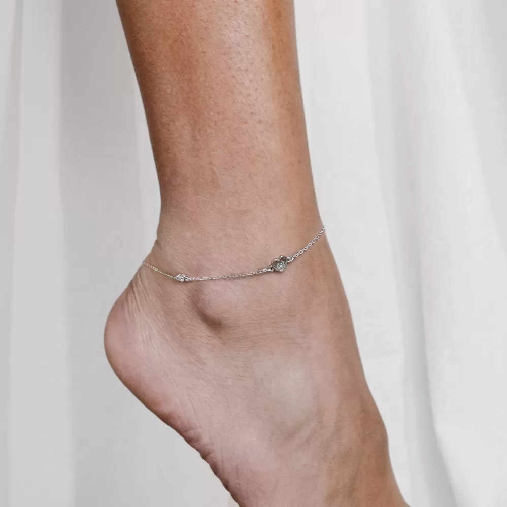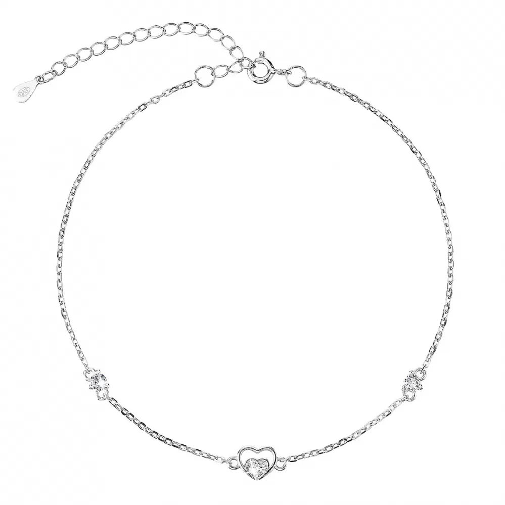 Strieborná retiazka na nohu srdiečka a biele zirkóny 16007.1