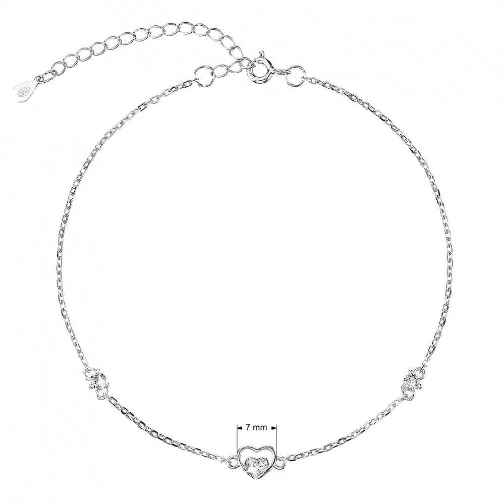 Parametre striebornej retiazky na nohu srdiečka a bielej zirkóny 16007.1